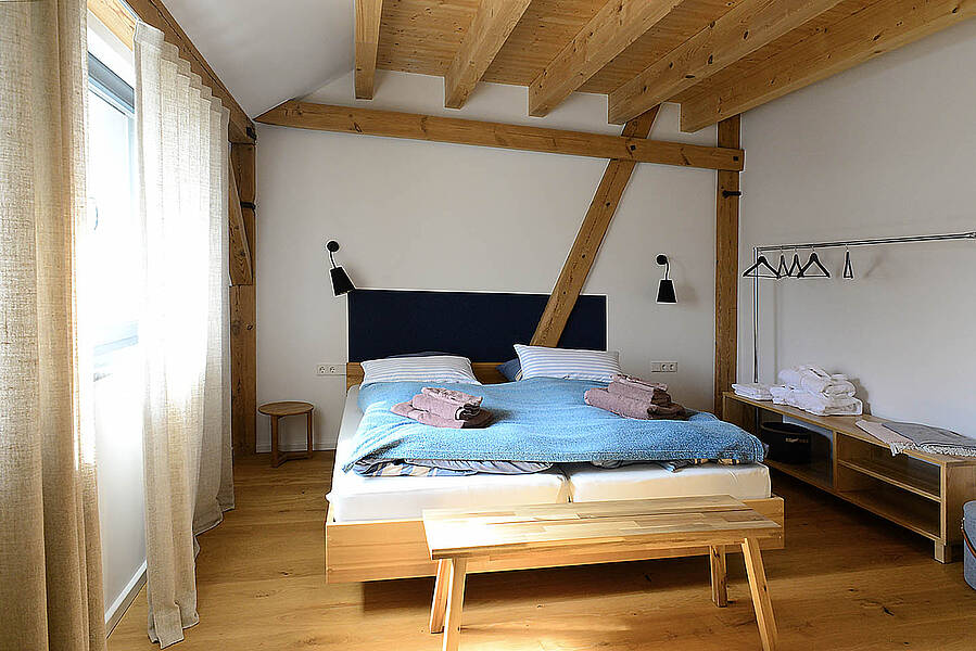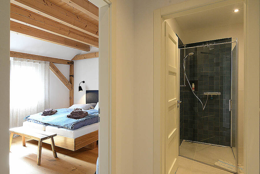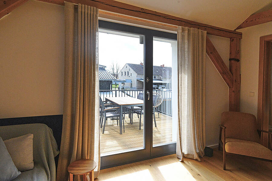 - Balkon zur Hofseite: Der Balkon zur Hofseite ermöglicht Ihnen, das lebendige Treiben auf dem Hof zu beobachten und gleichzeitig die frische Luft und die ländliche Atmosphäre zu genießen. Es ist der perfekte Ort, um Ihren Morgenkaffee zu trinken oder den Tag bei einem Glas Wein ausklingen zu lassen.